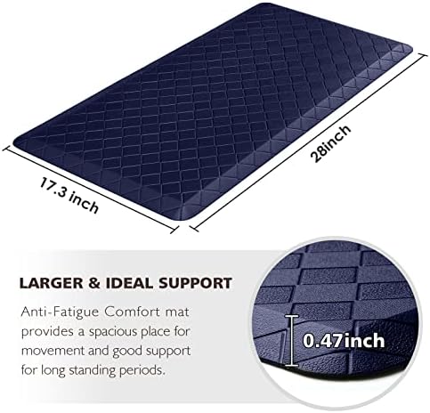 HappyTrends Kitchen Runner Rugs Anti-Fatigue mats,17.3″x 28″,Non Slip Waterproof Ergonomic Comfort Mat for Kitchen, Floor Home, Office, Sink, Laundry,Blue